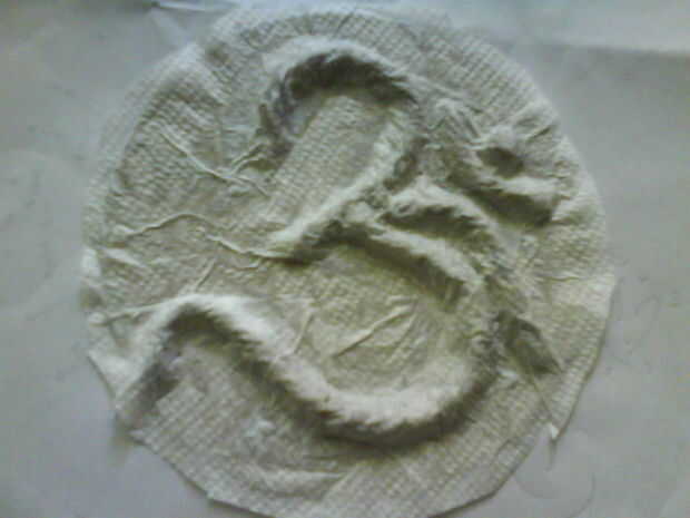 Pegado una hoja de papel, con cuidado que se ve claramente la forma del símbolo de OM.