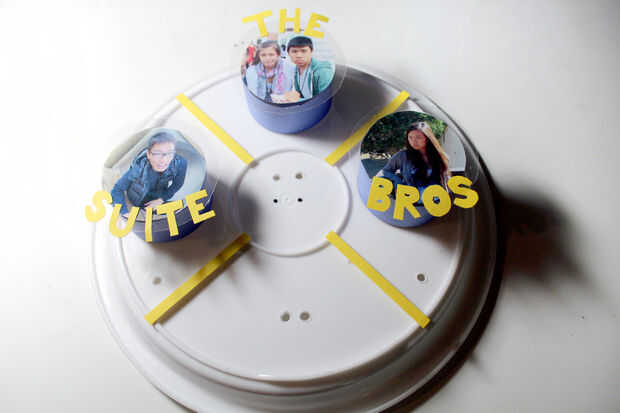 • Corte las palabras "La SUITE BROS" y coloca cada palabra en cada foto. Entonces, grabado en separadores amarillos.