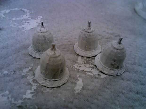 3D impresión 4 pequeñas cúpulas de 0,7 pulgadas a través en el borde. Pintar las cúpulas blancas.