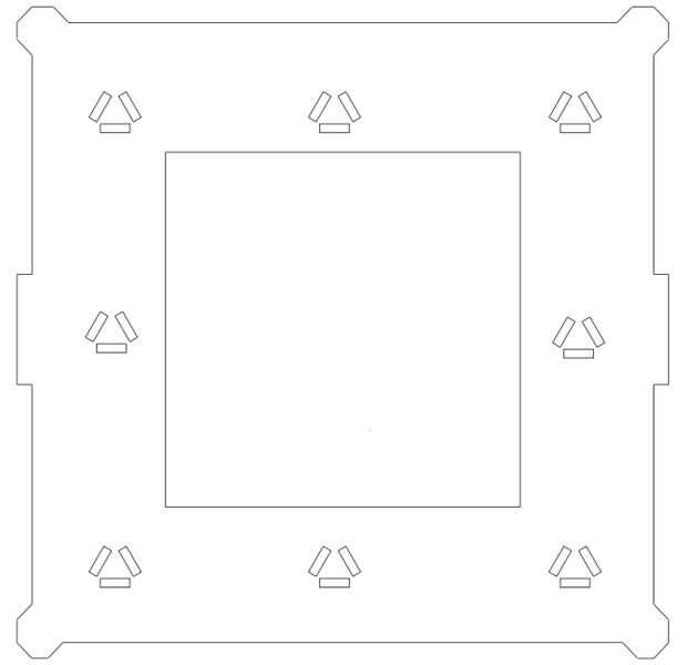 La parte inferior de la base del corte del laser. Es 11 pulgadas por 11 pulgadas. Saque la plaza en el centro.