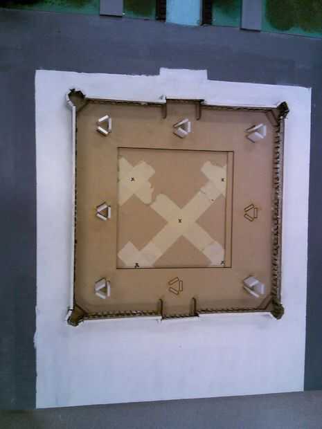Coloque los rectángulos en las ranuras en la base y pegar. Algunas de las ranuras será vacía. Estas ayudarán a soportar el peso del edificio.