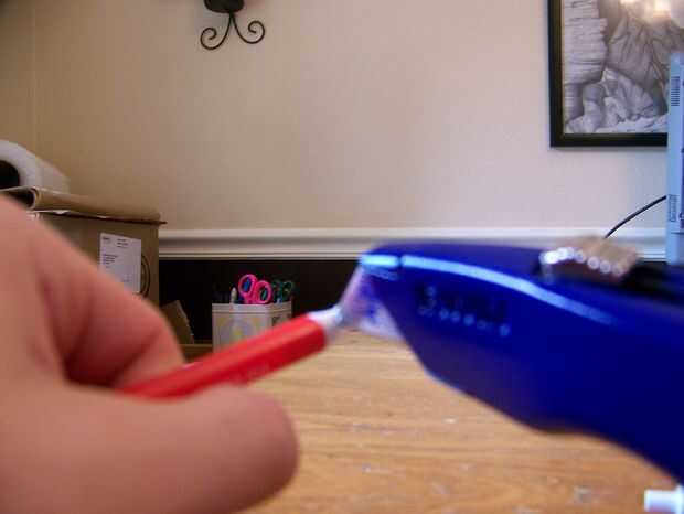 Ahora para la parte dolorosa. Al final de la PAC que no está preocupado debe ser masticado hasta que estén suaves. Luego, coloque la pieza de 5mm en la pluma suave.