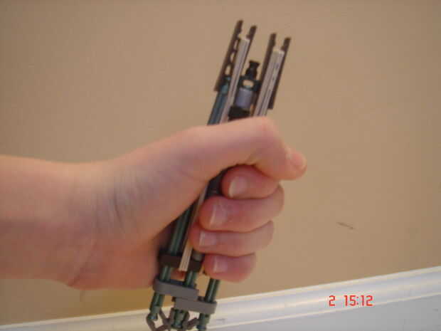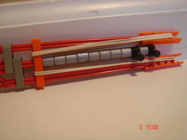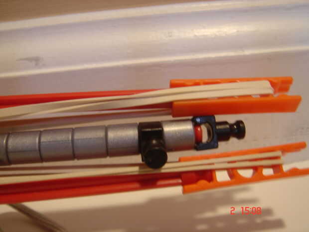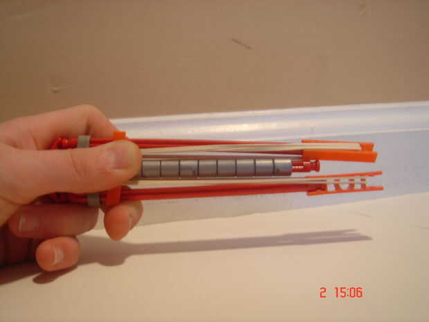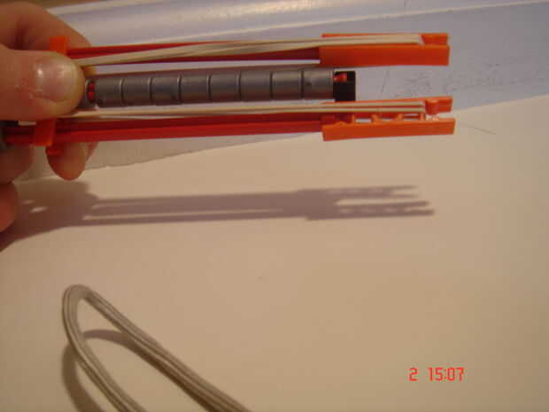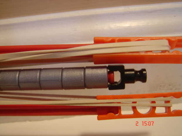 Para ello, añadir a espaciadores, coloque un conector en el área designada, luego colocar un conector en "Y" segundo justo detrás de la primera, pero no rápido, en! En lugar como suavemente como sea posible. Para bloquearlo, gire el negro conector como se muestra. Para poner la Granada en modo de explosión, coloque el montante conector.