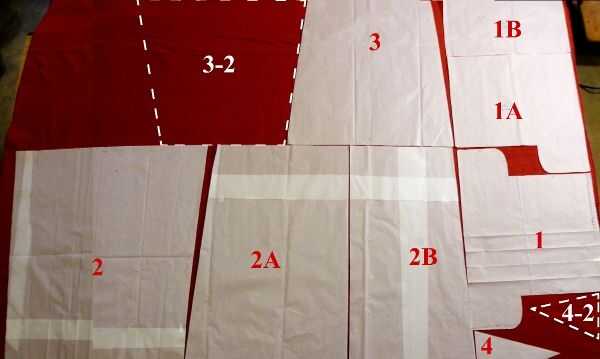 Coloque la tela B y proceso de repetición, la fijación/marca el patrón en la tela y corte de piezas de tela. Si no están centrando sus botones, asegúrese de voltear todas las piezas de patrón asimétrico y cuenta los lados de la derecha para que alinean las cáscaras internas y externas.