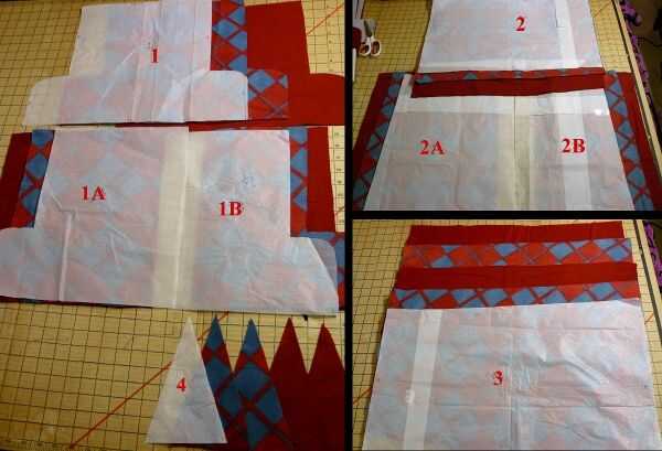 Una vez tienes un grupo que te gusta, fijar o marcar (tiza/marcador--todas estas marcas se oculta después de la costura) piezas sobre tela y cortar las piezas. Recuerde cortar dos de "manga" y dos de "inserción".