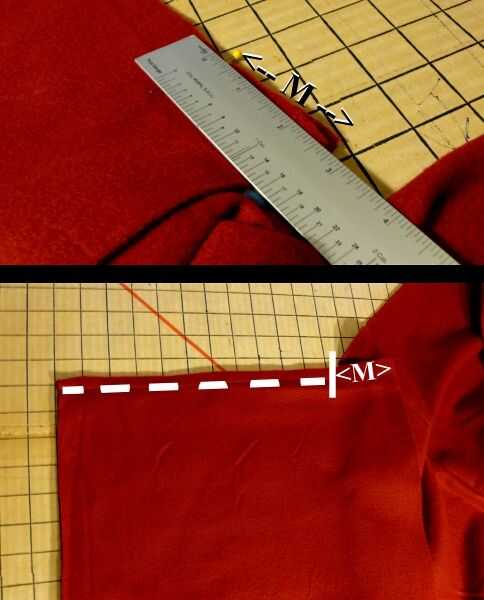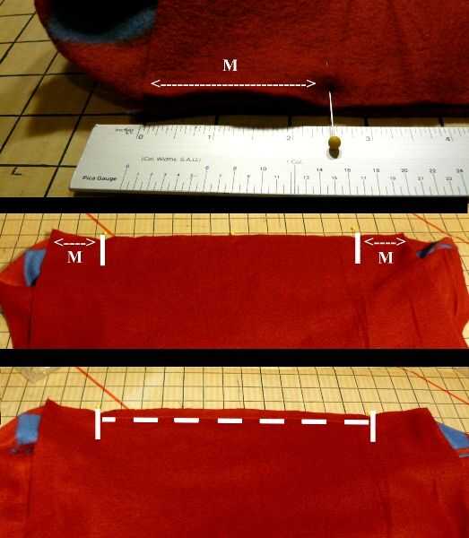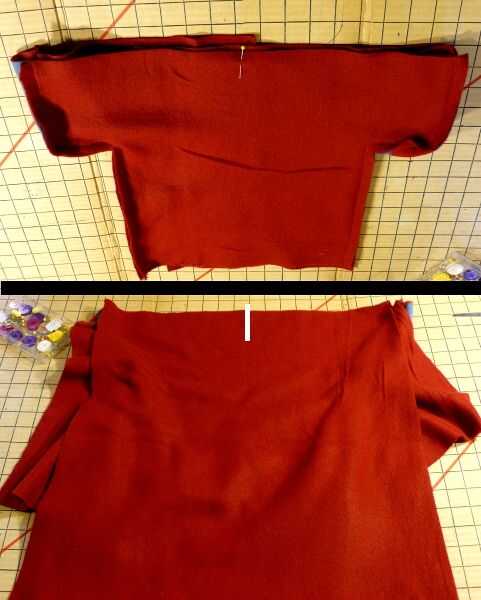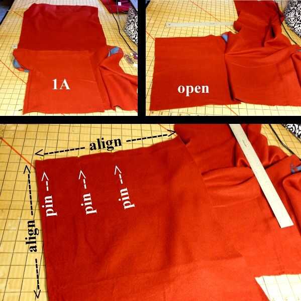 Derecho contra derecho, alinee el borde superior y borde de "delantero derecho" con la parte inferior y exterior (hombro opuesto) borde del "collar de la derecha"; PIN