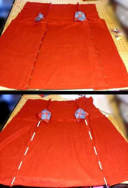 El interior del perno bordes de "collar de izquierda" y "izquierda adelante" "atrás" (este es un buen lugar para probar el ajuste y hacer pequeños ajustes... con cuidado! pins!); coser