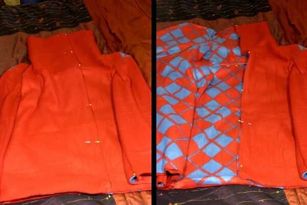 Quitar capa cuidadosamente, guardando piezas alineadas como sea posible y usar alfileres para unir interiores y exteriores de conchas en los bordes y donde parece más lógico.