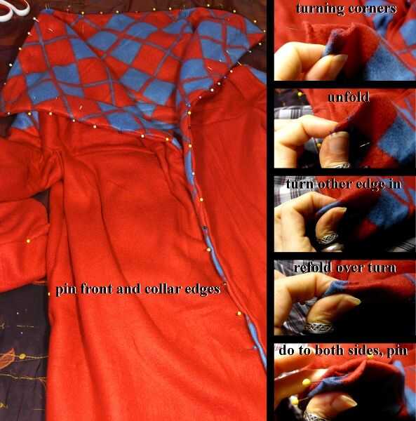 Vamos a empezar cerrando las capas girando en los bordes (1/2") alrededor del cuello, derecha/izquierda cuerpo; de clavos, entonces tapa costura como al borde que puede--1/8" a 1/4" va a hacer, a partir de la parte inferior de un lado del frente, el frente, el cuello y por el otro frente.