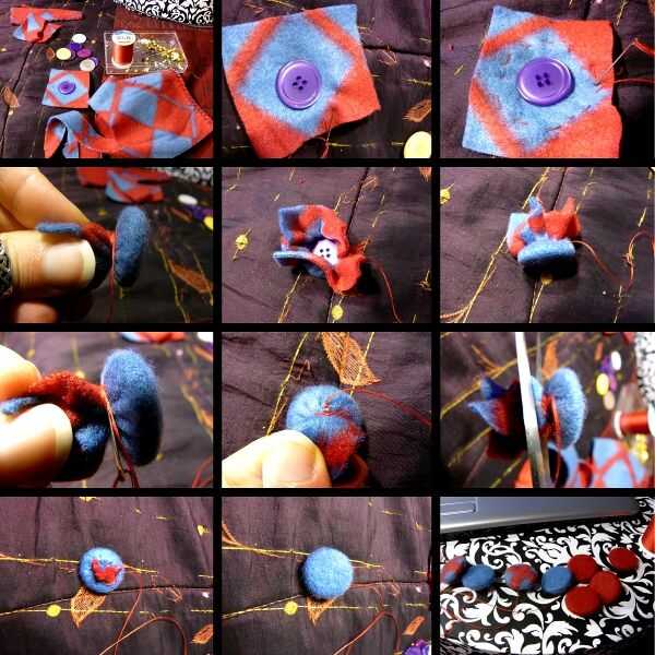 Coloque el [botón] en el centro de estas puntadas y tire del hilo firmemente, encerrar el [botón].