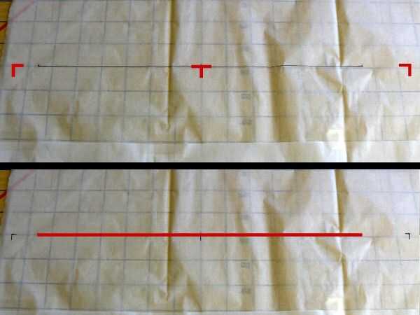 E tomar, añadir 1" y el centro en el punto medio. Utilizando marcas de izquierda y derecha como guía, marque.
