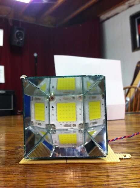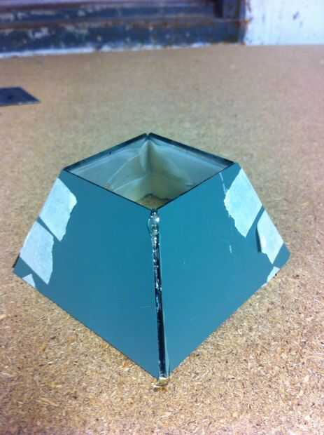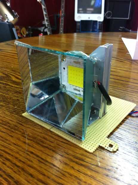 Para la modificación siguiente traté de espejos reales para el reflector en vez de aluminio mate. Esto hace la imagen incluso más brillante y más fácil de ver, pero otra vez todavía no era lo suficientemente brillante para disfrutar de una película.
