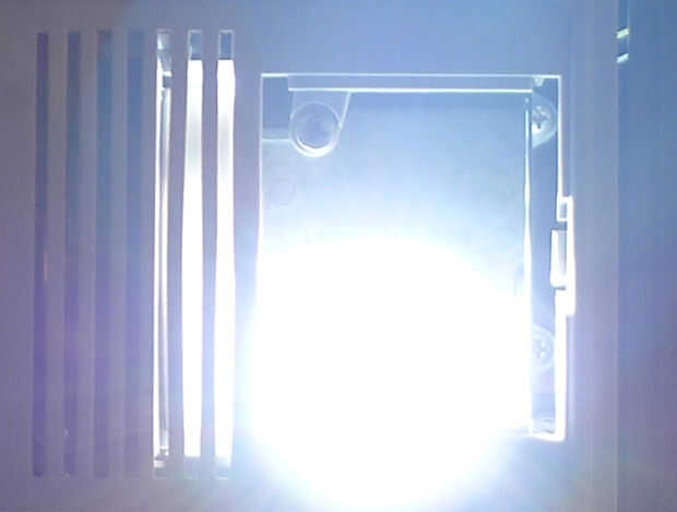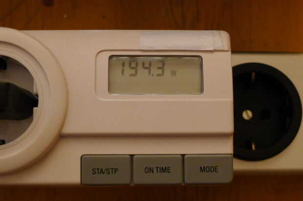 Un enfoque alternativo es usar un interruptor de dimmer para reducir el consumo de energía del proyector de diapositivas. Esto sin embargo no tuvo éxito: consumo de energía fue reducido a 50 W en casi no emitida luz.