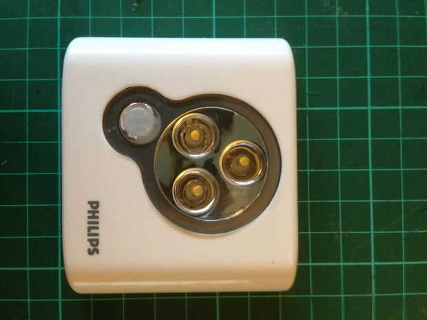 El detector de movimiento fue Ripeado de una lámpara de Philips LED Spot-On movimiento activado que conseguí en una venta de cargador de coche para 50 p. Comprado nuevo puede encontrarlos por menos de £5 en eBay y otros lugares. El detector de movimiento de estas bombillas es un tipo PIR y es excepcionalmente fácil de hackear. Todo lo que necesitas es desoldar unos componentes y usted está ausente!