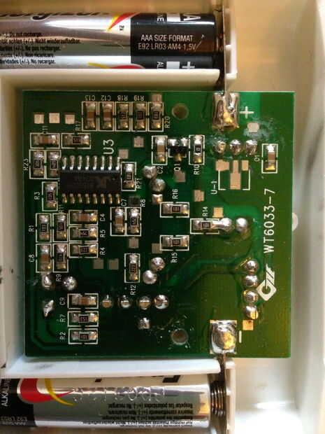 Primero Desenroscar la parte trasera y exponer la placa de circuito. Retire las baterías y el meneo la Junta a los contactos de la batería en cualquier lado y la Junta deben deslizarse justo fuera de la carcasa.