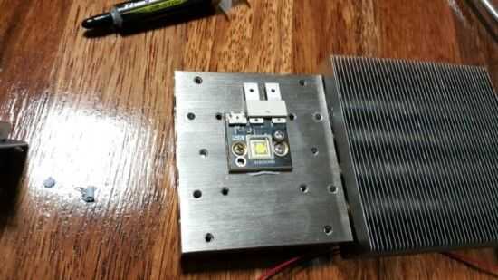Coloque la grasa térmica en la parte posterior del LED y conectar el LED con pernos.
