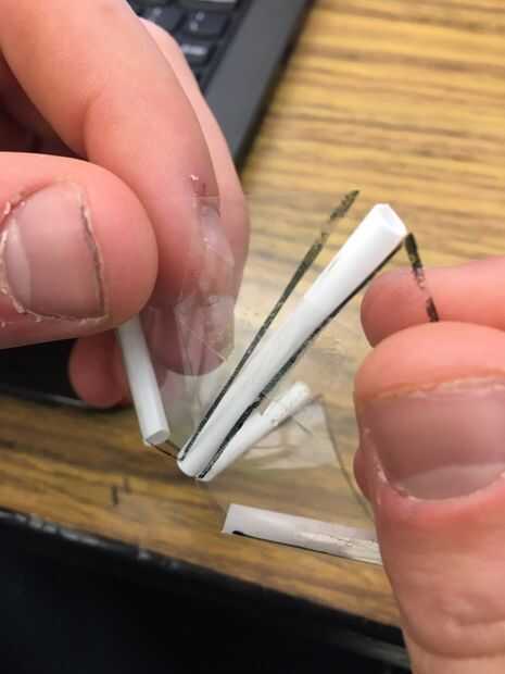 Con paja, corte a la longitud de la parte diagonal de la forma, la cinta la pirámide juntos. Los lados de la pirámide deben estar muy juntas, con tan poco espacio como sea posible entre las partes.