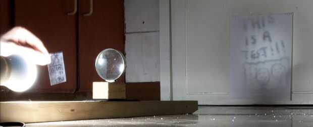 Ahora tienes que trabajar a lo grande una imagen se puede dibujar en la hoja de transparencia. Esto sobre todo dependerá de su lupa y hasta cierto punto su fuente de luz. Me escribió un montón de texto de y dibujó una imagen de poco en alguna hoja de transparencia y luego seguí hacia atrás hasta encontrar el alto máximo y ancho de corte.