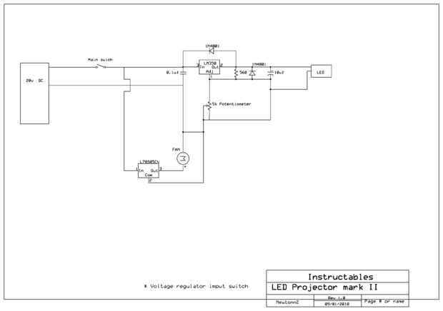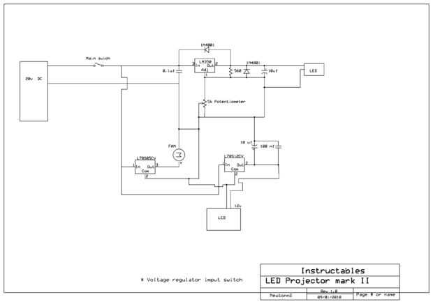 Aquí está el esquema. Coloque el regulador de voltaje en un buen disipador de calor.