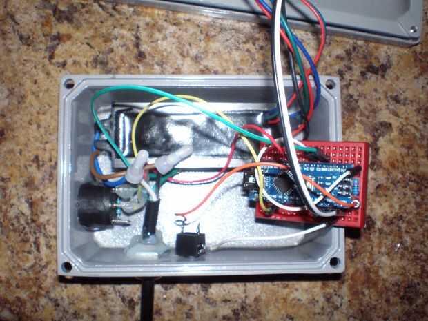 Me preocupaba en primer lugar tener que añadir un circuito de detector para comprobar si la luz estaba encendido o apagado, pero estaba feliz de encontrar los poderes de luz en cualquier señal. Otra ventaja es que al abrir la luz había toneladas de espacio para ocultar mi protoboard dentro! Las cosas fueron aun mejor cuando he probado la electricidad que llega hasta el detector IR y estaba lo suficientemente limpia como para ejecutar el Arduino para que no necesitaba preocuparse por una fuente de alimentación separada. No se muestra en el esquema pero alambré para Vin de 5v + desde la tierra detector a tierra del Arduino y el detector IR. Por favor, asegúrese de que nunca el Arduino alimentado por el USB y el LED conductor al mismo tiempo. Como nota lateral: esta forma de alimentar el Arduino proporciona realmente un poco por debajo de la tensión recomendada. Si tiene problemas intermitentes en su prueba, trate de alimentar el Arduino de una fuente de alimentación real. He encontrado como no utilizo retrasos, que todo funciona.