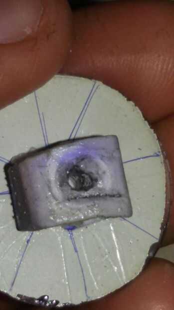 primer agujero en la almohadilla del examen y luego fijar el tornillo y el motor