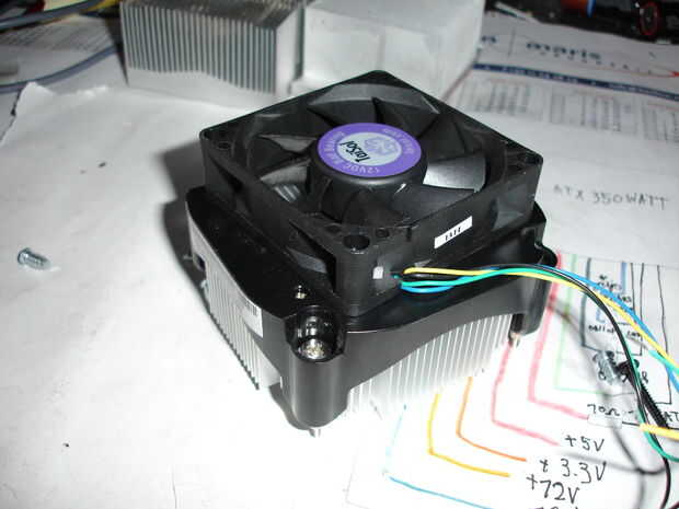 Esto es wy a que elijo para dos ventilador que sopla aire a través del disipador térmico y un liitle uno cerca de la pantalla lcd que aspira aire