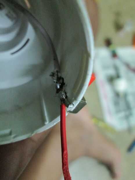 Yo no tenía acceso a una pistola de pegamento plástico y tuve que usar cinta aislante.