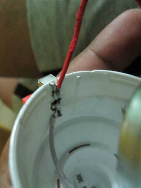 - Soldadura según el circuito y aislar los empalmes en lo SPST con algún pegamento plástico. No use pegamento ya que podría inutilizar el interruptor.