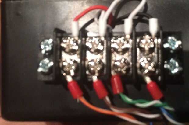 X-10 Contacta con cierre regleta - no bastante pero esto es la regleta que se encuentra a un costado de la caja para interfaces de los cierres de contacto X-10 al controlador Arduino.