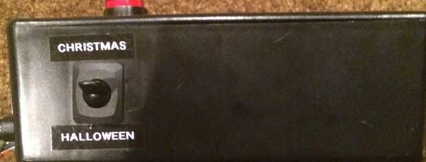 Interruptor de vacaciones - se utiliza para seleccionar la deseada subrutina de Arduino para ejecutar, comando Halloween la subrutina requiere e IR remoto adicional a seleccionar el vídeo correcto de la impulsión del USB. Tengo las Navidad y Halloween MP4 archivos en la misma unidad USB.