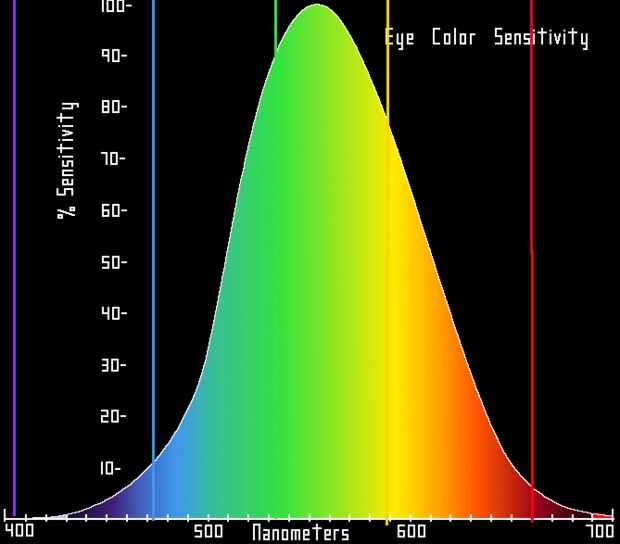 Longitud de onda de láser ideal para láser muestra es alrededor de 532 nm. Se trata de un haz de luz verde. El ojo humano tiene sensibilidad variable al espectro de color de la luz siendo verde más sensible.