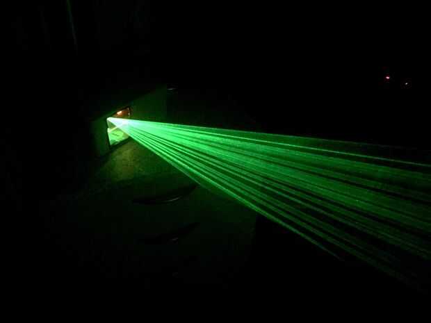 Update! Ver 32 paso para saber cómo utilizar este proyecto con una laser verde! Comprobación también - el LaserTweet Instructable para hacer que este proyecto Mostrar datos desde Twitter:Este proyecto utiliza un Arduino y algunos altavoces baratos pa