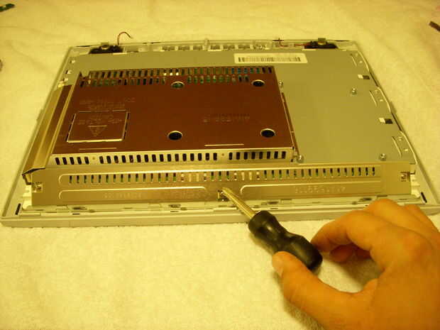 Mira para tornillos de conexión de la Junta y cubre a la luz de fondo, porque va a separarlos ya que va a utilizar la lámpara del proyector como la luz de fondo.