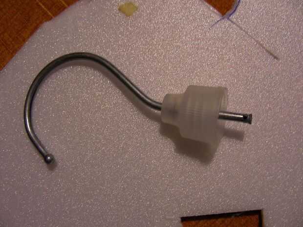 Próxima la suspensión. Me perforó un agujero en la Copa de la botella y coloca el gancho a través. En el otro extremo, me perforó un pequeño orificio y coloca un perno y una arandela para que puede torcer alrededor.