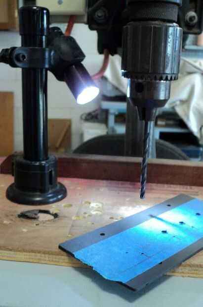 Un muy necesario uso de las linternas LED de carga de puerto que se regalan gratis es un simple foco portátil, útil para muchas tareas de la tienda. Ventajas principales son luz, poder independiente, tiempo de largo plazo y sin calor. Puse mi junto con un tubo de 1" corte, Monte una abrazadera de la barra de peso y un manillar de bicicleta $1,57 para el tipo de linterna. Puede ajustarse tanto horizontal como verticalmente para iluminar casi cualquier cosa que se está trabajando, incluso bajo el capó de un coche. Pegado un imán dona a la base aumentaría aún más su utilidad para el maquinista, permitiendo para la instalación en varios lugares de metales ferrosos que se encuentran en máquinas de herramientas. Del puesto que las luces son LED, son muy tacaños con el consumo de la batería - tienen una preferencia por el tipo alcalino y la salida de luz es nada menos que fenomenal para el trabajo cerca, incluida la inspección.