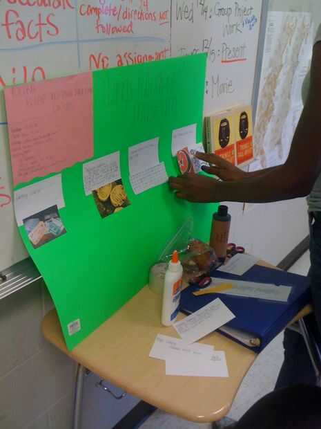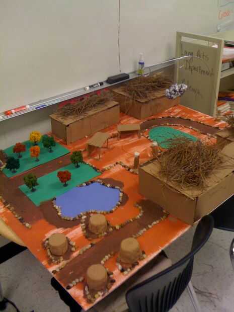 Los proyectos ocurrió simultáneamente con la lectura del libro. Los estudiantes nos da clase un amplio tiempo para trabajar con sus grupos para crear proyectos. Hay mini lecciones para complementar el aprendizaje de vocabulario y términos literarios pero la mayor parte de la clase fue estudiante y enfocado todo el tiempo.