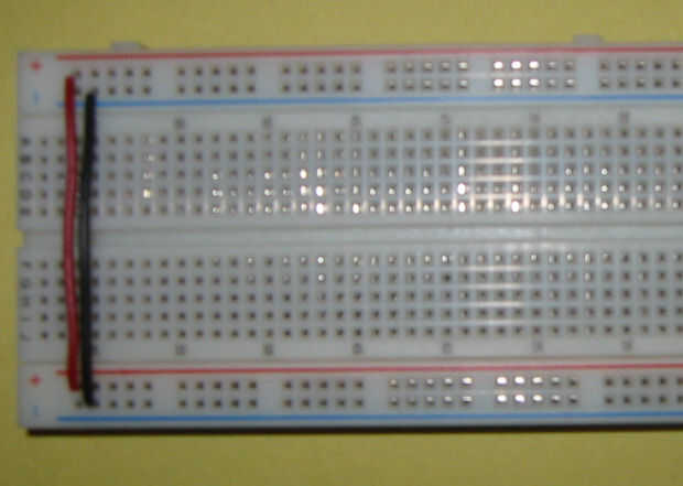 Paso/foto 3: Instale el hardware, aquí hay algunas cosas en cuenta: el cátodo (pata larga) del LED obtiene conectado a energía. A diferencia de los resistores, condensadores electrolíticos de aluminio tienen una positiva y una negativa con el conductor. La pierna con la franja gris por encima de ella significa es GND, y la pierna más larga es positiva.