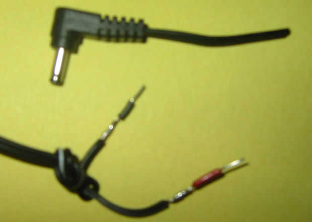 Paso/foto 4: Cortar el enchufe de la fuente de alimentación y en calibre 22 color un poco en los extremos de la soldadura. El alambre con la tira blanca en él será PWR, el otro es tierra.