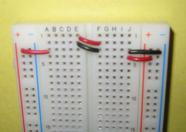 -El LM7805 se unen las líneas de energía de 3; 9V DC en la parte superior (pin 1), GND en el centro (pin 2) y C.C. 5V hacia fuera en la parte inferior (pin 3).