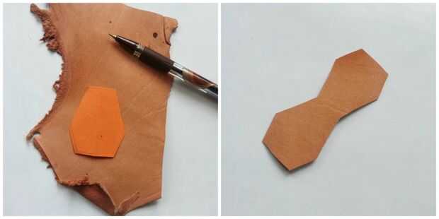 Coloque la plantilla sobre el cuero y trazar los lados. Doblar el cuero en la mitad y cortar según la plantilla.