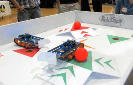En nuestro caso, hemos utilizado dos de estos robots para crear un reto "búsqueda de bola" en el CRC 2011 con secundaria y CEGEP estudiantes.