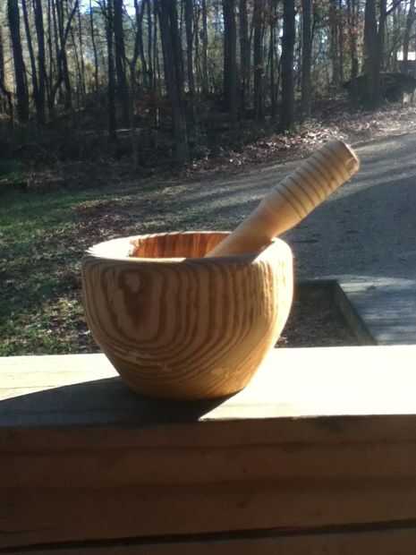 la pieza del tazón de fuente se hace de pino y la parte crushy es de cedro.