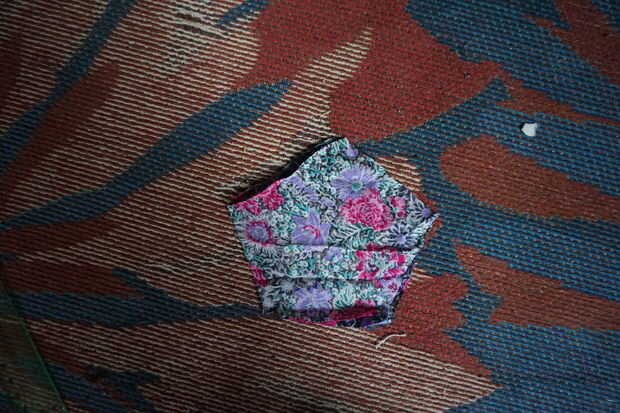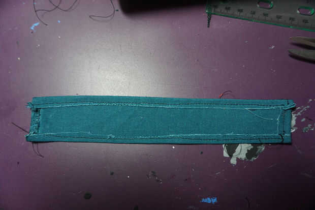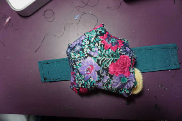 En primer lugar, usted necesitará poner derecho contra derecho del su Pentágono dos juntos, así los lados equivocados de las telas se va hacia fuera. entonces querrá volver a coser las dos piezas juntas, dejando aproximadamente un 1" espacio de metiéndola. Girar la tela interior y rellenar con el material de su elección, siendo tela de desecho de la mina. Luego coser el orificio cerrado. Para la correa, dobladillar los bordes cortar sus ojales y coser los botones en el otro lado (y tener cuidado y no cortar el dedo abierto en sus tijeras como mientras esta).