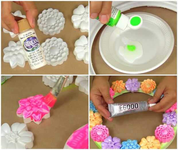 Pegamento de varias flores alrededor del marco de un espejo con E-6000