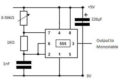Prueba una vez construido, la salida (pin3) del perno con un osciloscopio y alterar la resistencia variable para obtener el ancho de pulso a alrededor 16 micro segundos. Si no tienes un osciloscopio, simplemente ajuste el potenciómetro a la mitad de su resistencia con un multímetro que debería funcionar casi tan bien!