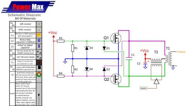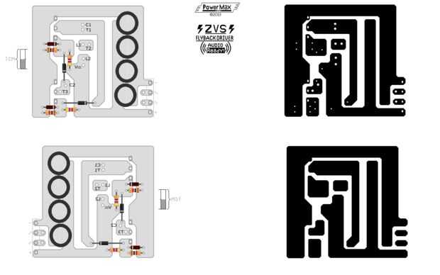 Una de las más populares del circuito flyback controladores es el controlador de tiempo de retorno ZVS. Este circuito es básicamente un oscilador Royer, que utiliza dos MOSFETS para controlar un circuito de tanque LC (C1 y L1). Este circuito se basa en la resonancia más que el modo de tiempo de retorno de la operación. Pensar en resonancia como empujar un chico gordo en un columpio y los transistores como 2 matones enormes a ambos lados presionando a ese niño gordo pobre ida y vuelta real en el momento justo, y como lo hacen él cobra impulso (como la tensión). causando la tensión aumentando casi 4 veces el voltaje de entrada, descarga!