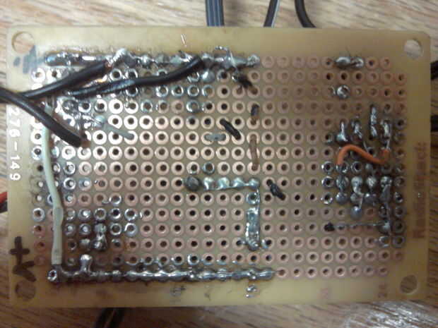 2) dé vuelta el tablero y conectar todas las piezas juntas. (sugerencia: hacer para esto por la flexión sobre los conductores quiero conectado entre sí para que toquen y soldadura en lugar) recuerda, cuando le da la vuelta el tablero, usted está mirando un volteado tan la opinión de la Junta ser doble seguro que busca en la derecha delantera en la parte inferior.