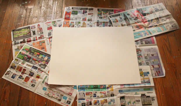 Coloque algún diario viejo para limpiar fácil. Ahora, coloque su pedazo grande de papel o póster del tablero en la parte superior. Esto va a ser tu lienzo!