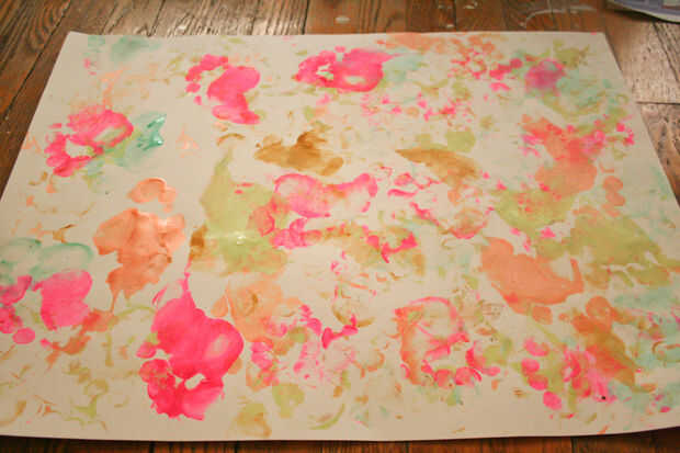 Ahora, este uno de los proyectos que usted puede hacer con el papel de la huella. Una vez que la pintura esté seca, puede colocarlo en un marco de imagen! Mi papel es 18 x 24 pulgadas, por lo que usted mismo puede obtener ese marco de tamaño. O, puede elegir su marco tamaño favorito y solo corte su pintura para que el tamaño y colóquelo en el marco! Una vez hecho esto, puede colgar en su habitación y admirar sus ilustraciones fantasía... o footwork de lujo! Obviamente, no tengo un marco para demostrar, pero probablemente usted puede ver donde va.