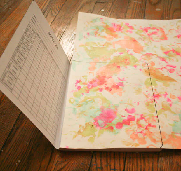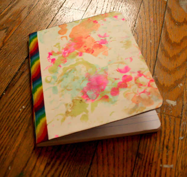 - Si usted tiene cualquier tapa de cuaderno extra colgando hacia fuera, se puede hacer igual como lo hice, poniendo simplemente en alguna cinta colorida a la columna vertebral.